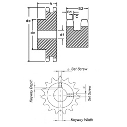 A stocked pre-Bored sprocket includes a Standard Finished Bore to h8 Tolerance Plus a Standard Keyway and two standard set screw over keyway and at 90º (Unless indicated differently) If a standard bore size is not in stock the cost to Bore Keyway and setscrew is $110 (large heavy sprockets may be slightly more) |